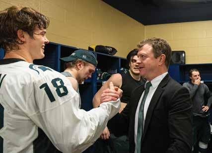 Coaching wasn’t part of a grand plan. After graduating from college and four seasons in the minors, with his fi rst child on the way, Nightingale left the game for a job with a construction company to secure health insurance. But the pull of the rink never faded.