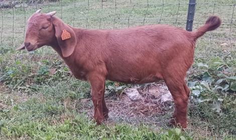 Tag #1126. She was a triplet. Her dam is dual-registered Studbook South Africa and ABGA. Stout young female. Sire and dam are solid red. She has a future in this business. You take her home; she can go several directions...ALL GOOD.