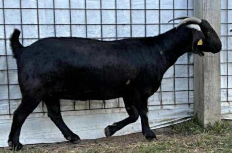 This doe comes with both looks and performance. She's wide-chested, square-hipped, and level toppedthe kind you notice from across the pen. A proven kidder and producer of outstanding wether-style offspring; she has also excelled in the show circuit. With correct teat structure and exposure to a wetherstyle buck since July, she's ready to deliver winning kids.