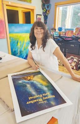 Miska Salemann signs this year’s Stormy Weather Arts Festival posters. The art piece used for the poster is ‘Rocking the Milky Way.’