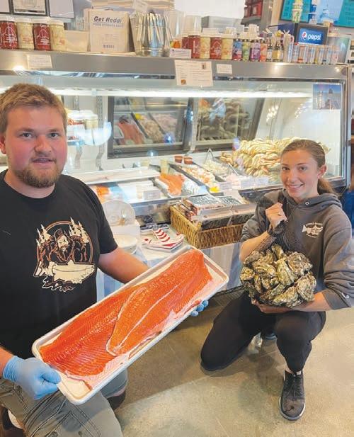 CJ Beckman and Heaven Barrett display some of the fresh caught bounty in their market. Courtesy photo.