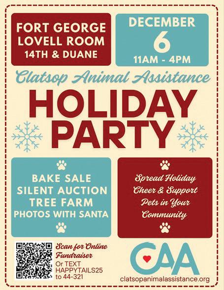 Saturday, December 6, from 1 to 4 p.m. at the library (131 N. Hemlock). Residents and visitors of all ages can enjoy time with old friends; make new acquaintances; drink tea and hot, mulled cider; and savor home-made treats provided by the library’s talented volunteers. Our younger patrons can get into the holiday spirit during the Holiday Storytime and Crafting Party on Saturday, December 13 at 1 p.m. Volunteers will read holiday stories in English and Spanish, then children can make snow globes and ornaments. Children will receive free holiday books and can take home hot chocolate bombs donated by Bruce’s Candy Kitchen. All ages are welcome to this free event, which is part of Cannon Beach Haystack Holidays. Haystack Holidays events are listed on the Cannon Beach Chamber website at https:// www.cannonbeach.org.