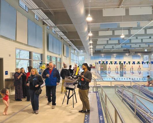 “As you can imagine, with 591 donations, (district staffer) Kylie would always make the joke this building was built five dollars at a time, and honestly, it couldn’t be more true,” Smith said. “As a result, we have a 15,000-squarefoot aquatic center, with a 145,000-gallon lap pool, a 30,000-gallon therapy pool and an outdoor patio to be enjoyed next summer.” Smith then invited event attendees to grab a flute of sparkling apple cider from the building’s foyer, and the crowd toasted the new facility before Smith and House cut the ribbon to open the facility, which has been open to swimmers since September. Tours were then offered, as well as games for kids, a photo booth and snacks, before a free, open swim.