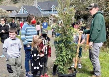 Cannon Beach academy students plant trees as part of their community’s twelve-day long celebration of earth day.