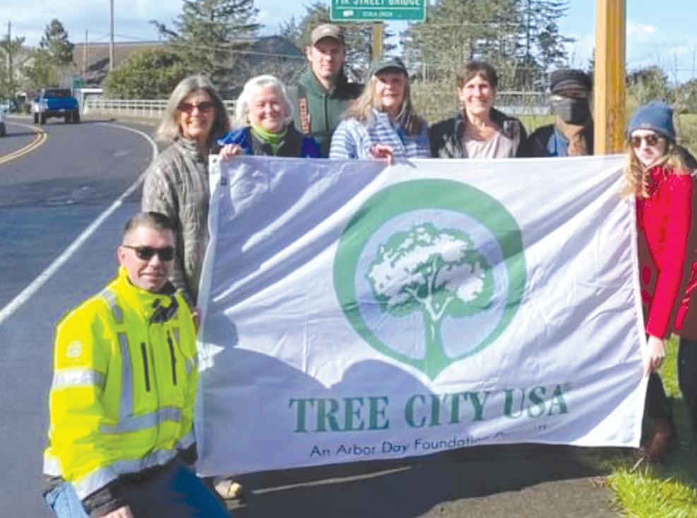 Residents of Cannon Beach accept the designation of Tree City USA on the first day of a twelve-day celebration marking arbor day in the town.