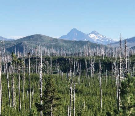 Douglas fir, private timber companies are suffering the consequences of this fungal disease which has affected hundreds of thousands of acres of their single-species, even-aged commercial tree plantations in the central and northern Oregon Coast Range. Some recently harvested areas have seen successive failures of recently-planted Douglas fir trees due to Swiss Needle Cast disease, and the failure of young western hemlock trees due to hotter and dryer summers. Up until the early 20th century, the coastal temperate rainforest of the northern and central Oregon Coast Range were a mix of Sitka spruce, western hemlock, western red-cedar, red alder and Oregon big-leaf maple, with Douglas fir making up about 20% of the forest. This original coastal temperate rainforest, now mostly destroyed, contained some of the highest “biomass per acre” of any forest on the planet. Along with shifting rainfall patterns, warmer temperatures, disease and insects, Pacific Northwest forests are facing an increasing threat of large, catastrophic wildfires. The ability of native forests to regenerate after a highintensity fire is being impaired by a warming climate. Studies in Colorado show that some lower-elevation forests impacted by high-severity wildfire are unable to regenerate due to the warmer and drier conditions, with shrubs and grass taking the place of the original forest cover.