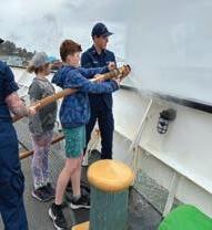 In April the 3rd, 4th and 5th grade classes of the Cannon Beach Academy Charter School had an action-packed day in Astoria learning all things maritime, starting at the Columbia River Maritime Museum they touched old cannons, watched giant worldwide video maps of the ocean currents and flashed morse code from the display bridge of Navy vessel. Then