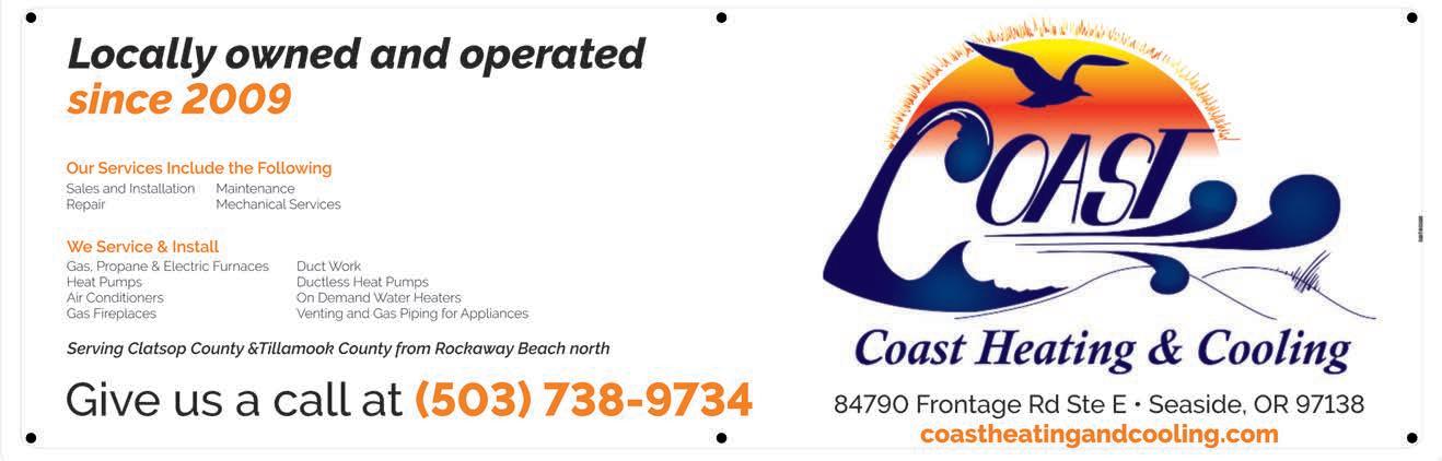 July 21, 2023 A4 CANNONBEACHGAZETTE.COM | CANNON BEACH GAZETTE CANNON Your Mitsubishi and Daikin Ductless Heat Pump Headquarters. Purchase a new system by September 1st for an extra $350 off when you mention this ad! Take advantage of rebates available through Energy Trust of Oregon and lower your electric bill when you upgrade to high-efficiency heating and cooling. H22349 BUSINESS DIRECTORY ADVERTISE YOUR BUSINESS HERE TO CREATE TOP OF-MIND-AWARENESS CALL 503-842-7535 OR EMAIL HEADLIGHTADS@COUNTRYMEDIA.NET TODAY! ARBORIST - TREE CARE ISA Certified Arborists ISA Board-Certified Master Arborist ISA Tree Risk Assessment Qualified Comprehensive Service, Pruning/Removal, Stump Grinding/Hazard Evaluations (503)791-0853 www.arborcarenw.com Care for Your Trees H22358 CCB#171855 LCB#9343 WA#ARBORCI909RW BoB McEwan construction, inc. Excavation • undErground utiitiEs road work • Fill MatErial sitE PrEParation • rock owned and operated by Mike and Celine MCewan Serving the paCifiC northweSt SinCe 1956 • CC48302 503-738-3569 34154 Hwy 26, Seaside, OR P.O. Box 2845, Gearhart, OR CONSTRUCTION