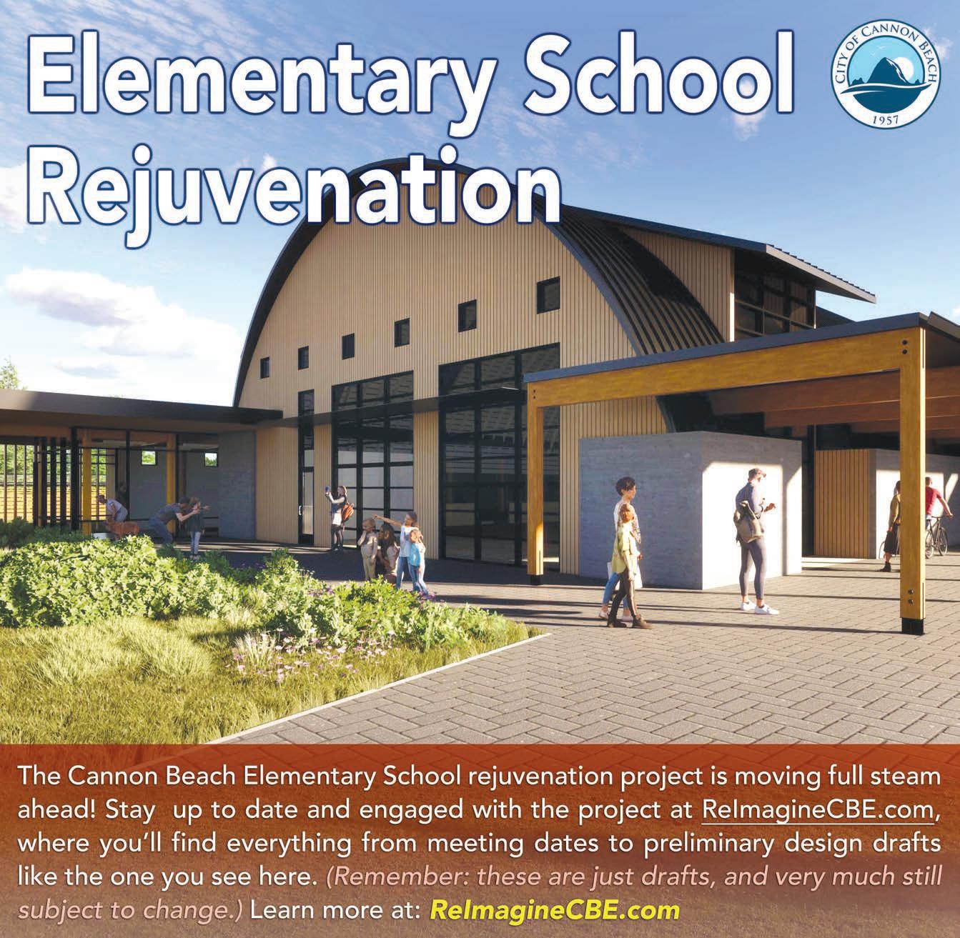 As the dream begins to be realized, the first of three sche matic design community outreach meetings for the Cannon Beach Elementary School Rejuvenation Project Community Outreach was held at Cannon Beach City Hall on September 14th. City leaders, along with the architect design team from CIDA, presented the preliminary design concepts for the re-development of the ele mentary school at NeCus’ Park. A member of the Clatsop-Nehalem Confederated Tribe was present, and it was well attended by local residents. The architect and City are collaborating with Clat sop-Nehalem tribal members on all aspects of this project.