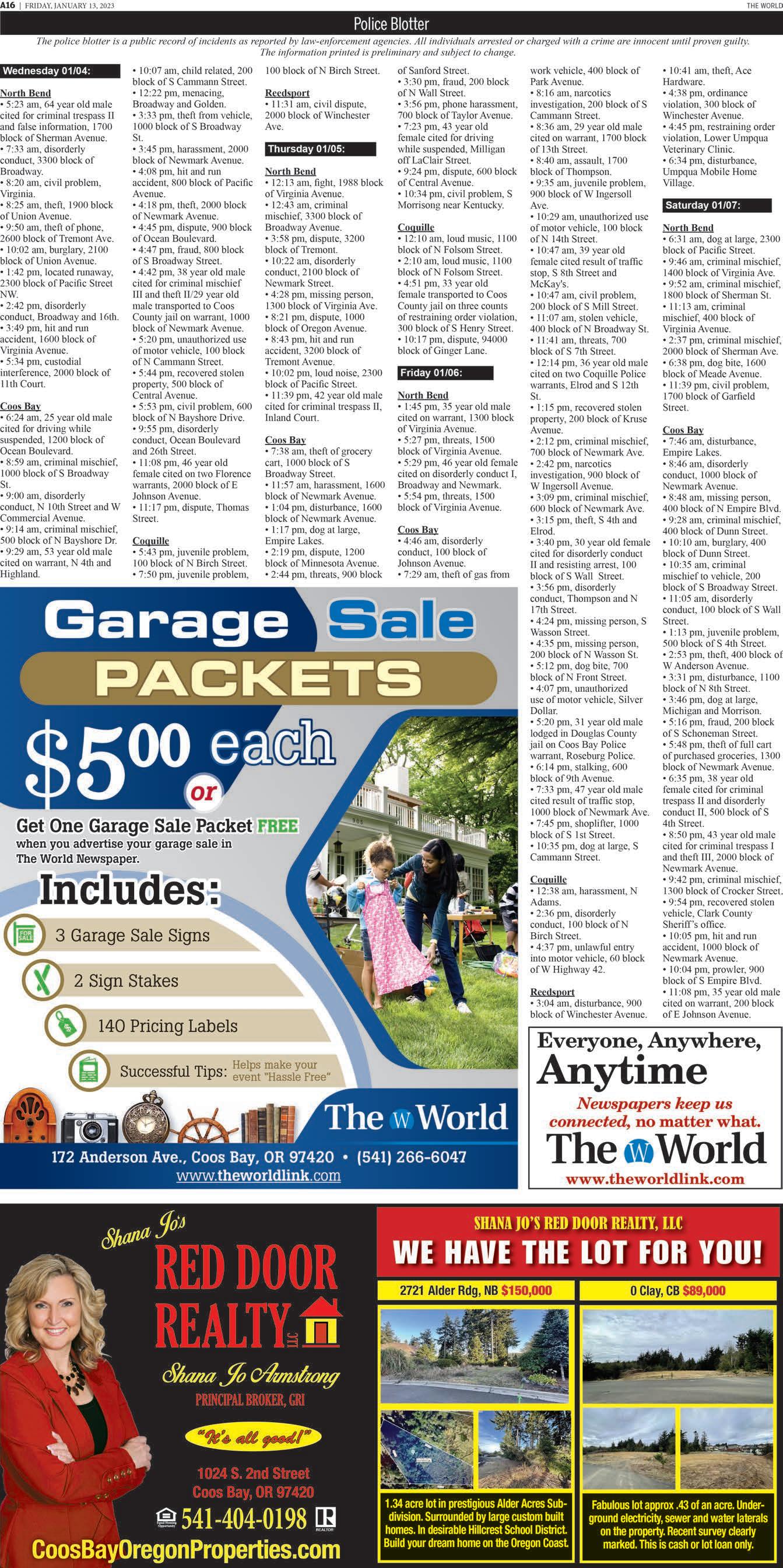 A2 | FRIDAY, JANUARY 13, 2023 The World 172 Anderson Avenue, Coos Bay P.O. Box 1840, Coos Bay, OR 97420 © 2022 Country Media, Inc. Office 541-266-6047 NEWS DEPARTMENT Publisher David Thornberry dthornberry@countrymedia.net Editor worldeditor@countrymedia.net Sports worldsports@countrymedia.net Obituaries worldobits@countrymedia.net ADVERTISING Advertising — Colleen DeCamillo worldsales1@countrymedia.net Classifieds & Coffee Break westernworld@countrymedia.net Customer Service Kari Sholter worldcirculation@countrymedia.net Legal Advertising worldlegals@countrymedia.net SUBSCRIBER SERVICES Subscription rates: EZ Pay: $24.00 per month or 52 weeks $192.00. Billing will continue beyond the initial order period unless you contact The World Newspaper by calling 541-266-6047. Rates may change after any introductory offer period. AD DEADLINES Postmaster: Send address changes to: The World, P.O. Box 1840, Coos Bay, OR 97420-2269. The World (ssn 1062-8495) is published Tuesday and Friday, by Country Media, Inc. Tuesday’s issue Approved and paid for by: Classifieds: Legals: Obituaries: Wednesday Wednesday Wednesday 3:00pm 3:00pm 3:00pm Friday’s issue Approved and paid for by: Classifieds: Legals: Obituaries: Monday Monday Monday 3:00pm 3:00pm 3:00pm PSORIASIS Withcommitmenttotreatment,many diseasescanbeputintoremission. WeofferLightTherapy,Excimerlaser treatments,aswellasNarrowBand UVBtreatmentsforthebest solutiontoyourcondition. Forrelief, CallToday! 541-672-7546 AcceptingMedicare, OHP,PPOandmost Painful...Embarrassing… 940E.5thSt.EastWing,Coquille,OR97423 www.ASCDermatology.com PSORIASIS Withcommitmenttotreatment,many diseasescanbeputintoremission. WeofferLightTherapy,Excimerlaser treatments,aswellasNarrowBand UVBtreatmentsforthebest solutiontoyourcondition. Forrelief, CallToday! 541-672-7546 AcceptingMedicare, OHP,PPOandmost Painful...Embarrassing… 385RanchRd.,Reedsport,OR97467 Get Clear Wetreatacnefor allagegroups, frominfancytoseniors. ForTreatment, CallToday! 541-672-7546 AcceptingMedicare, OHP,PPOandmost HealthPlans www.ASCDermatology.com 541-6 Get Clear Wetreatacnefor allagegroups, frominfancytoseniors. ForTreatment, CallToday! 541-672-7546 AcceptingMedicare, OHP,PPOandmost 385RanchRd.,Reedsport,OR97467 790E.5thSt.(EastWing),Coquille,OR97423 www.ASCDermatology.com Get Clear Wetreatacnefor allagegroups, frominfancytoseniors. ForTreatment, CallToday! 541-672-7546 AcceptingMedicare, OHP,PPOandmost 385RanchRd.,Reedsport,OR97467 790E.5thSt.(EastWing),Coquille,OR97423 www.ASCDermatology.com PSORIASIS PSORIASIS Withcommitmenttotreatment,many diseasescanbeputintoremission. WeofferLightTherapy,Excimerlaser treatments,aswellasNarrowBand UVBtreatmentsforthebest solutiontoyourcondition. Forrelief, CallToday! 541-672-7546 AcceptingMedicare, OHP,PPOandmost HealthPlans Painful...Embarrassing… PSORIASIS Withcommitmenttotreatment,many diseasescanbeputintoremission. WeofferLightTherapy,Excimerlaser treatments,aswellasNarrowBand UVBtreatmentsforthebest solutiontoyourcondition. Forrelief, CallToday! 541-672-7546 AcceptingMedicare, OHP,PPOandmost HealthPlans Painful...Embarrassing… PSORIASIS Withcommitmenttotreatment,many diseasescanbeputintoremission. WeofferLightTherapy,Excimerlaser treatments,aswellasNarrowBand UVBtreatmentsforthebest solutiontoyourcondition. Forrelief, CallToday! 541-672-7546 AcceptingMedicare, OHP,PPOandmost HealthPlans Painful...Embarrassing… 940E.5thSt.EastWing,Coquille,OR97423 www.ASCDermatology.com PSORIASIS Withcommitmenttotreatment,many diseasescanbeputintoremission. WeofferLightTherapy,Excimerlaser treatments,aswellasNarrowBand UVBtreatmentsforthebest solutiontoyourcondition. Forrelief, CallToday! 541-672-7546 AcceptingMedicare, OHP,PPOandmost Painful...Embarrassing… 385RanchRd.,Reedsport,OR97467 Get Clear Wetreatacnefor allagegroups, frominfancytoseniors. ForTreatment, CallToday! 541-672-7546 AcceptingMedicare, OHP,PPOandmost HealthPlans 385RanchRd.,Reedsport,OR97467 790E.5thSt.(EastWing),Coquille,OR97423 www.ASCDermatology.com Get Clear Wetreatacnefor allagegroups, frominfancytoseniors. ForTreatment, CallToday! 541-672-7546 AcceptingMedicare, OHP,PPOandmost 385RanchRd.,Reedsport,OR97467 790E.5thSt.(EastWing),Coquille,OR97423 www.ASCDermatology.com Get Clear Wetreatacnefor allagegroups, frominfancytoseniors. ForTreatment, CallToday! 541-672-7546 AcceptingMedicare, OHP,PPOandmost 385RanchRd.,Reedsport,OR97467 790E.5thSt.(EastWing),Coquille,OR97423 www.ASCDermatology.com PSORIASIS PSORIASIS Withcommitmenttotreatment,many diseasescanbeputintoremission. WeofferLightTherapy,Excimerlaser treatments,aswellasNarrowBand UVBtreatmentsforthebest solutiontoyourcondition. Forrelief, CallToday! 541-672-7546 AcceptingMedicare, OHP,PPOandmost HealthPlans Painful...Embarrassing… 385RanchRd.,Reedsport,OR97467 940E.5thSt.EastWing,Coquille,OR97423 www.ASCDermatology.com PSORIASIS Withcommitmenttotreatment,many diseasescanbeputintoremission. WeofferLightTherapy,Excimerlaser treatments,aswellasNarrowBand UVBtreatmentsforthebest solutiontoyourcondition. Forrelief, CallToday! 541-672-7546 AcceptingMedicare, OHP,PPOandmost HealthPlans Painful...Embarrassing… 385RanchRd.,Reedsport,OR97467 940E.5thSt.EastWing,Coquille,OR97423 PSORIASIS Withcommitmenttotreatment,many diseasescanbeputintoremission. WeofferLightTherapy,Excimerlaser treatments,aswellasNarrowBand UVBtreatmentsforthebest solutiontoyourcondition. Forrelief, CallToday! 541-672-7546 AcceptingMedicare, OHP,PPOandmost HealthPlans Painful...Embarrassing… 940E.5thSt.EastWing,Coquille,OR97423 www.ASCDermatology.com PSORIASIS Withcommitmenttotreatment,many diseasescanbeputintoremission. WeofferLightTherapy,Excimerlaser treatments,aswellasNarrowBand UVBtreatmentsforthebest solutiontoyourcondition. Forrelief, CallToday! 541-672-7546 AcceptingMedicare, OHP,PPOandmost Painful...Embarrassing… 385RanchRd.,Reedsport,OR97467 940E.5thSt.EastWing,Coquille,OR97423 www.ASCDermatology.com Get Clear Wetreatacnefor allagegroups, frominfancytosen