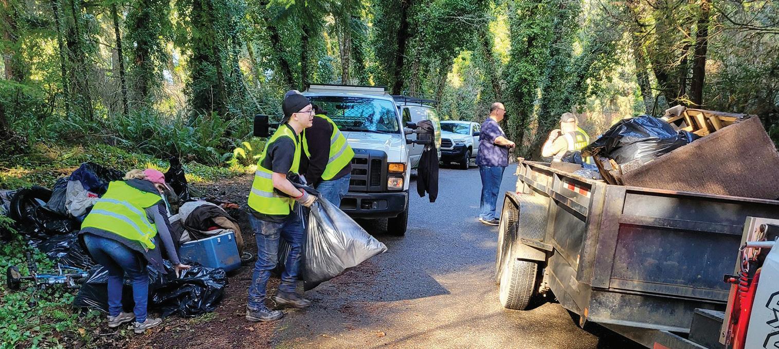 As volunteers with Oregon Bay Area Beautification continue their work to clean up the community, word is beginning to spread. At the latest event to clean up the area around Ferry Road Park in North Bend, close to 60 people came out and helped remove nearly 12 cubic yards of trash and debris.