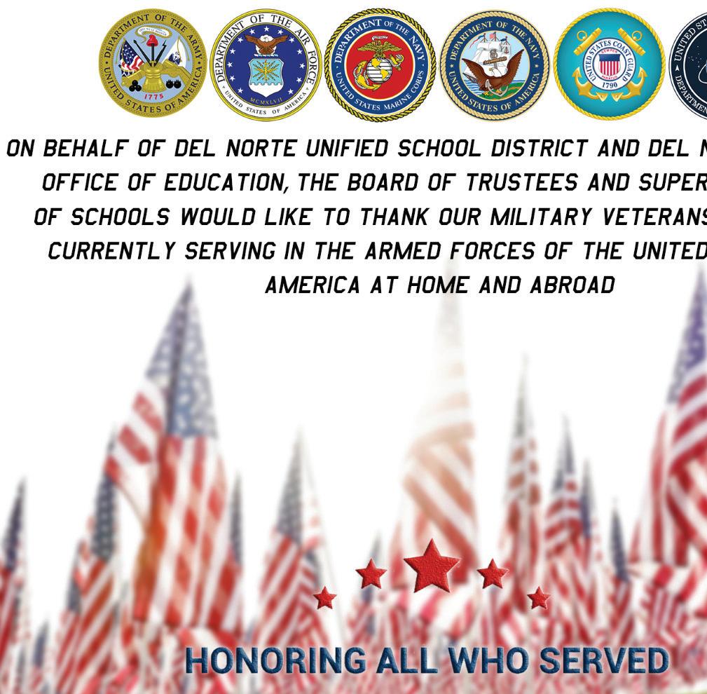 Del Norte Association for Cultural Awareness (DNACA) is pleased to present an exhibit by Veterans and their Family Members, now on display through January 12, 2023 at the Del Norte Courthouse. The exhibit features a variety of visual art mediums including watercolor, photography, and multi-media. The courthouse is located at 450 H St. in Crescent City, and is open from 8 a.m. - 5 p.m. weekdays, except for state holidays. For more information, contact DNACA at 707-4641336 or office@dnaca.net.