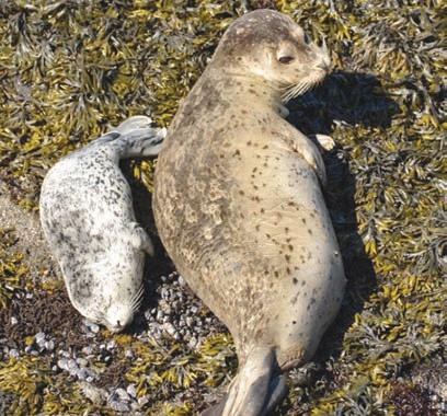 A Pacific harbor seal and her pup rest near Depoe Bay.