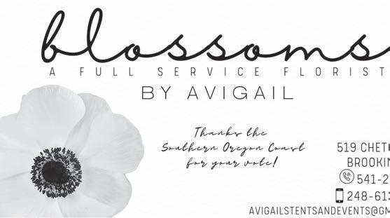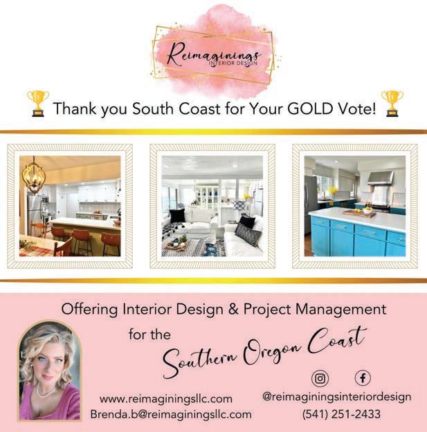 16372 Lower Harbor Rd. Brookings, OR A.ell Design & Atelier (541) 244-8033 702 Chetco Ave., Brookings, OR Thank You For Voting For Us! Tammy Tanner Owner and Official Greeter Norie 800 Chetco Ave., (Hwy 101), Brookings Mon.-Sat. 11:00-5:00 • Sun. 12-4 • 541-469-4300 Special thanks to our customers for supporting us in these challenging times Feather Your Nest READERS CHO CEAWARDS Curry Coastal Pilot Gold W nner 2021 ~ A QUA I N T BOUTIQUE ~ READERS CH ICEAWARDS Curry Coasta Pilot Gold W nner 2022 READERS CHOICEAWARDS G d W nn 2023 CURRY COUNTY PILOT BEST AT WHAT THEY DO e News Is Just the Beginning Your Community…Your Family… Your Interests…Your Home… It’s All a Part of Your Local Newspaper! 541-813-1717 Your Community… Your Interests…
