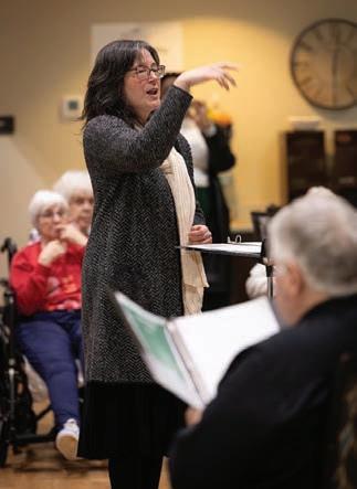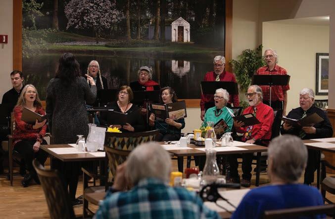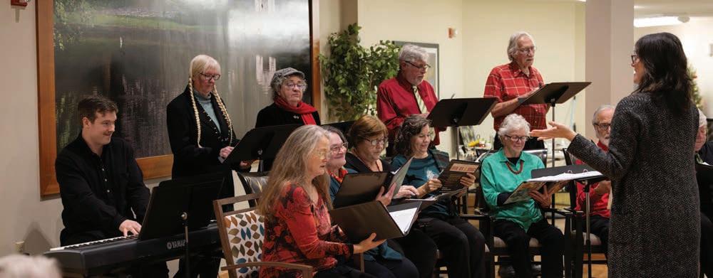 challenging pieces. The residents’ warm reception helped calm nerves and build confidence ahead of the January concert series. Among the singers were Mary Margaret and Hal Hurst, a couple who first met decades ago while singing in a church choir in San Diego. Their shared musical history made joining the Gem Tones feel like a natural next chapter.
