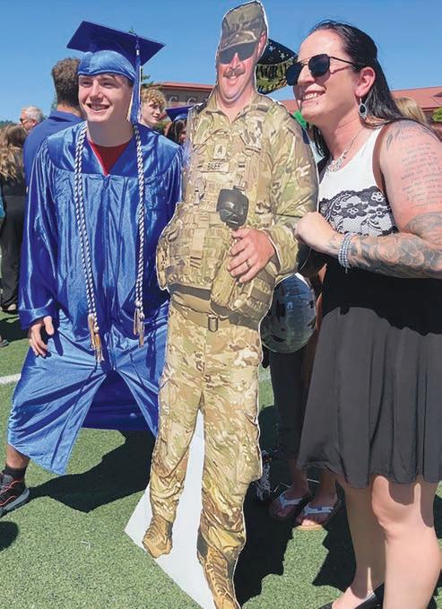 (Top Left photo) Cottage Grove High School graduate John Bauer poses with his parents after the ceremony. His father, who is serving in the military overseas, was unable to attend the event, so the family created a full-size image of him to symbolically include the proud father in Bauer’s graduation photos.