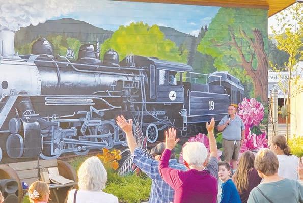 Faye Stewart, Bohemia Foundation president and City of Cottage Grove Public Works director, described the process that placed the historic depiction of The Goose as it chugged along the north side of Dorena Lake. The mural was originally slated for the east wall of the nearby American Market across the railroad tracks and behind a chain link fence.