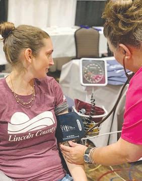 Above, State Rep. David Gomberg chats with folks during one of the recent Senior Fairs at the Chinook Winds Casino. (Courtesy photos from Heather Hatton) Above left, Health screenings options are available at the Senior Fair.
