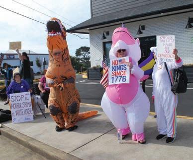 Several people dressed in custom and held signs showing their concerns during the No Kings Day rally in North Lincoln City. See more photos with this story at the Lincoln County Leader website. (Jeremy C. Ruark / Lincoln Country Leader)