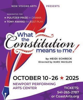 2:30 - 4:30 p.m. Newport Performing Arts Center 777 West Olive Street. New Visions Arts presents Heidi Schreck’s timely and powerful play that powerfully explores America’s founding document and its impact on ordinary lives. Tickets are $25 general admission, $20 group rate and $15 for students. Go to coastarts.org or call 541-265-2787