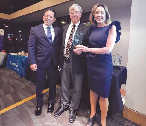 OCCC President Dr. Marshall Mease Roache, Dr. Bruce Clemetsen, center, and OCCA Executive Director Abby Lee show off the award. (Courtesy photos)