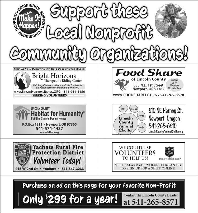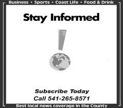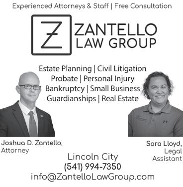 Notice is hereby given that the Port of Newport claims a lien in the amount claimed below, pursuant to ORS87.152, for the reasonable and agreed charges for labor and materials, storage or services provided at the request of the owner or lawful possessor of the following described personal property: Personal property: F/V Azalea; Official number:\~ 227859; Reputed owner: Shannon Dixon F/V Azalea; Last known address: 3868 Middle Grove Dr NE, Salem, OR 97305; Security interest holder:\~\~ None; Amount of claim of lien:\~\~ $23,913.12 (which includes storage of property and accrued late charges until sale date, and costs of lien foreclosure); The Port of Newport has retained the property for at least 60 days from the date when the charges for services provided were due. Notice is hereby given that unless the lien is paid prior to the date set forth for sale below, said property will be sold to the highest bidder.\~ The successful bidder must pay 10% of the bid price in cash or certified check immediately upon being declared the successful bidder.\~ The balance of the bid price is to be paid in cash or certified check within 24 business hours of offering the successful bid.\~ The lien claimant may bid part or all of the lien amount claimed, plus storage and foreclosure sale expenses, which will be an offset against the lien amount. Minimum bid is $11,152.11. Bids accepted until:\~\~ June 12, 2024; Email bids to: mbrown@portofnewport. com OR; drop bid off at:\~ Port of Newport,\~\~ 600 S.E. Bay Blvd., Newport, OR 97365; Bid forms can be found online at www.portofnewport.com or at the address listed above. The sale of the property will be “as is, where is” and there are no representations by the lien claimant as to the condition of the property or its title.\~ Any person wishing to inspect the property prior to the sale may do so during normal business hours, by contacting the Harbormaster at\~ 541-270- 5557. LCL24-3051 City of Siletz Request for Proposals Engineering Services for Updating the City’s 20-Year Capital Improvement Plans for Water, Sewer and Transportation. Deadline:\~ June 17, 2024, at 5:00 PM Contact Barbara Chestler City Recorder for the Complete RFP Document at recorder@ cityofsiletz.org or 541444-2521