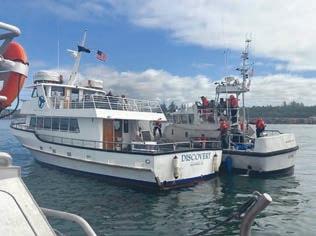 Once on scene, the rescue crews placed the Discovery into a side tow. They transited