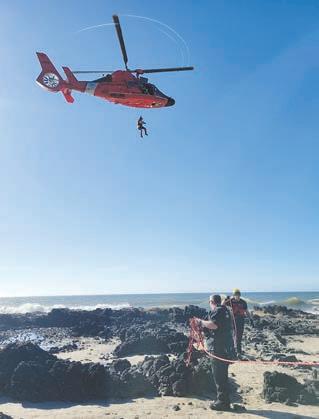 A United States Coast Guard helicopter from North Bend arrived at approximately 4:10 p.m. and attempted to lower a Coast Guard member to the well. (Courtesy photo from Yachats Rural Fire Protection District)