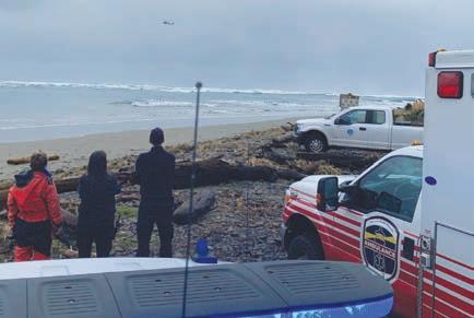 First responders on the scene of the ocean search with the Coast Guard helicopter in the distance above the water. Photo courtesy of TCSO.