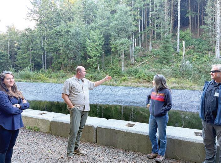 The tour visited the city’s water treatment plant, a fish habitat improvement project and a viewpoint from which they overlooked the 595 acres the city is planning to purchase. Discussions around protecting the watershed that provides the city’s drinking water have been ongoing for around a decade, with focus initially falling on improving fish passage and water quality in Jetty Creek. To that end, by 2017, all fish passage barriers had been removed from the stream when the stream was returned to its original course around an impoundment pond that had previously been formed by a weir that blocked fish passage. Forward momentum on purchasing the watershed stalled during the coronavirus pandemic, but in 2022, city council asked City Manager Luke Shepard to again work to develop a plan to consummate the purchase. That process began with applying for a $50,000 source water protection plan grant, which funded the development of a plan by GSI Water Solutions Incorporated, including a citizen advisory committee. That plan, approved earlier this