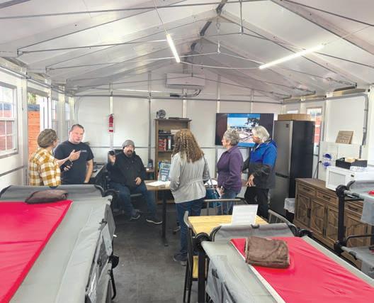 Attendees inspect the interior of the new Anchor congregate shelter at CARE’s downtown Tillamook headquarters.