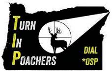 If you know of or suspect other crimes against fish wildlife or habitat, please report to the Turn In Poachers (TIP) Line. 1-800-452-7888 or *OSP (*677) from a mobile phone. Or email: TIP@osp. oregon.gov.