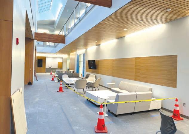 While most elements of the building are complete, artistic and design touches, including a painted topographical map of the county, frosted glass appliques featuring themes inspired by nature and displays honoring donors, remain to be installed. Similarly, while basic classroom furnishings have been set up in the upstairs classrooms and both the EMT and nursing labs downstairs, installation of the nursing-training stations and EMTtraining equipment will wait until after the final cleaning.
