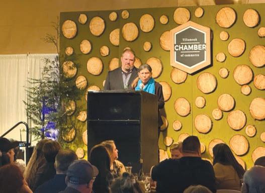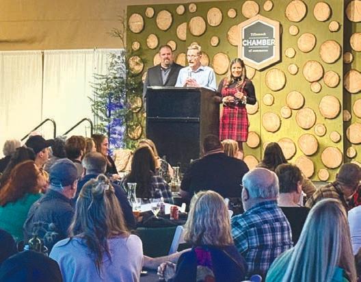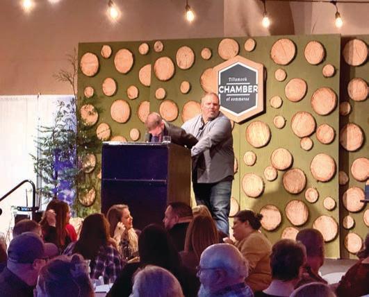 Following the auction, the crowd participated in a raise-your-cards style fundraising event for the maintenance of the veterans’ memorial in downtown Tillamook, before Aufdermauer returned to present the chamber’s community awards.