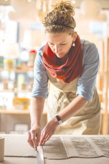 Lombard has been a staple to the downtown art scene for many years, charming shoppers with her unique pottery. Instead of using a wheel, Lombard uses a slab roller for each section that makes up her pottery pieces. She then adds patterns and textures, from rollers that she carves herself, with themes from nature. Lombard finishes the whole process off by