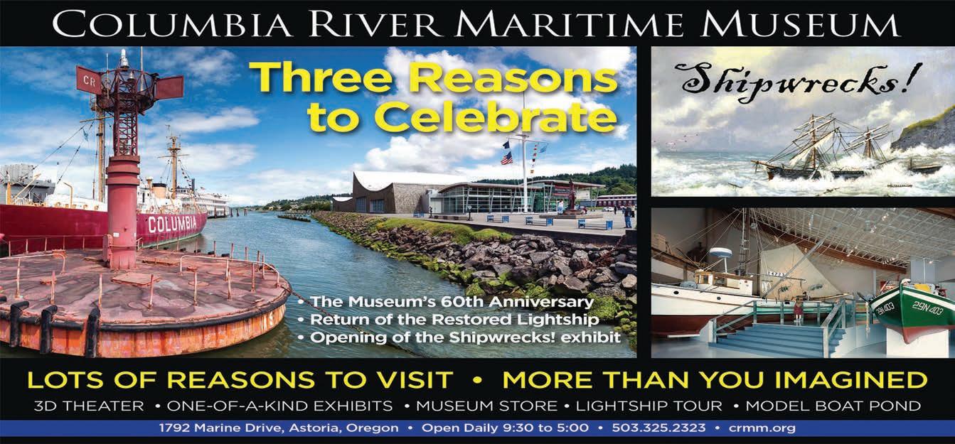 Join the Columbia River Maritime Museum as we celebrate the return of the Lightship Columbia from her recent drydock restoration in Portland, the opening of our newest exhibit, Shipwrecks!, and our 60th anniversary.