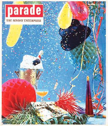 Talk about starting the New Year with a bang: This Parade cover showcased a mischievous young man about to use his lit cigarette to pop the party balloon his date is blowing up.