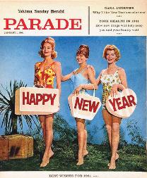 The women on the cover of Parade magazine were young actresses— Constance Towers, Danielle De Metz and Jody Warner—on the set of the Adventures in Paradise TV series. Parade’s photographer handed each one a prop that together spelled out the magazine’s message to readers.