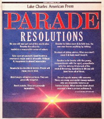 When Ellen DeGeneres pens a list of resolutions, you expect it to be funny—and it was in this Parade article (she’s toasting with milk on the cover). But some of her advice in 2006 was surprisingly practical. “Remember that resolutions don’t always have to be about fixing what’s wrong with you,” she wrote. “You also can use them to celebrate what’s right with you.” DeGeneres was celebrating how she’d used hypnosis to help quit smoking. When it came to most people’s number 1 goal (get moving), she wisely suggested that “Hold off on exercise” be a resolution and that all fitness activity be deferred until midyear when the weather would be better. She also recommended writing resolutions in lemon juice on parchment, which makes it invisible to the naked eye unless you hold a lit candle behind it. “That’s just for fun,” she wrote. “It makes you feel like a pirate.”
