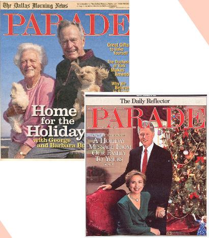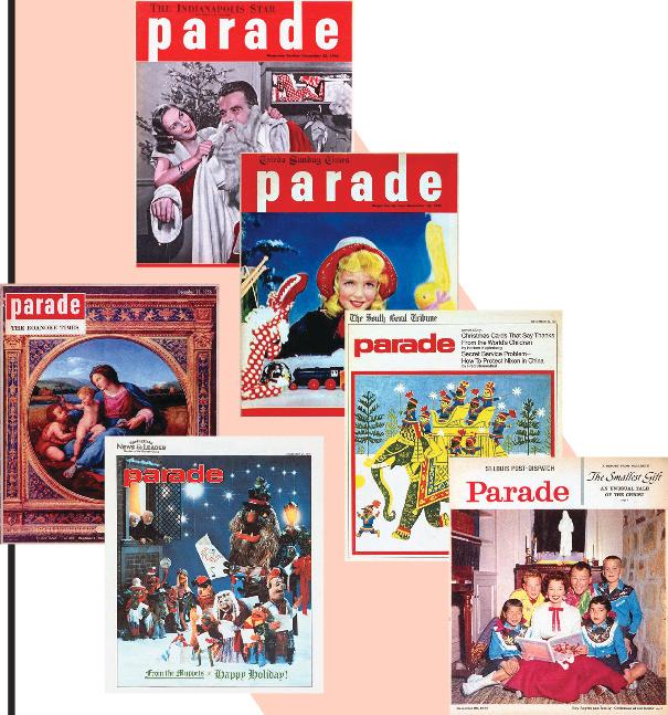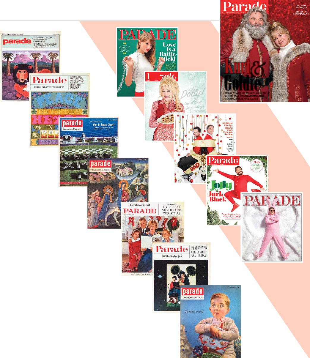 In years past, you never knew what to ex In years you never knew what to expect when it came to a holiday cover in Parade magazine. There was beautiful a magazine. There was beautiful art, sometimes religious. There were stars—from Dolly Parton and Taylor Swift to stars—from Parton and Swift to Jack Black, Goldie Hawn, Kurt Russell, Will Ferrell and Mark Wahlberg—and Russell, Will Ferrell and Mark Wahlberg—and family portraits (Roy Rogers and family, the great granddaughter of Charles D and family, the great granddaughter of Charles Dickens, the Bushes at home for the holidays, the Clinton family). There was Bob for the holidays, the Clinton There was Bob Hope in Vietnam, the Muppets singing Christmas carols and 1,200 midshipm Christmas carols and 1,200 midshipmen from the U.S. Naval Academy spelling out a holiday message while Parade s out a message while shot from a Navy helicopter up above. And there were many, many cover m helicopter up above. And there were many, many cover messages of “hope.” Hope for peace on earth, hope for the safety of faraway troop Hope for peace on earth, hope for the of troops, hope for that very special present under the tree, hope for a better life. Here very present under the tree, for a better life. Here’s hoping you s have a wonderful holiday—whatever that means to you. —Anne K have a wonderful that means to you. —Anne Krueger