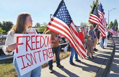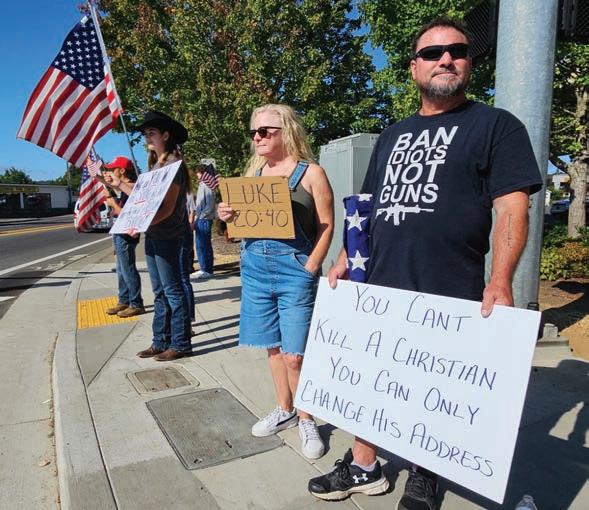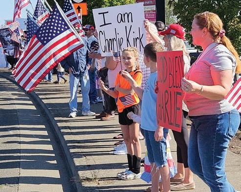 (Top) Darren and Brenda Stephenson, of Dallas, were among supporters of all ages at the Charlie Kirk rally. (Bottom)Supporters of slain conservative icon Charlie Kirk attend a rally in Dallas on Saturday with messages of love and patriotism.