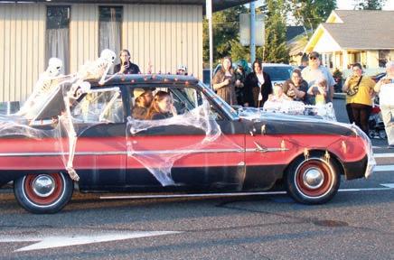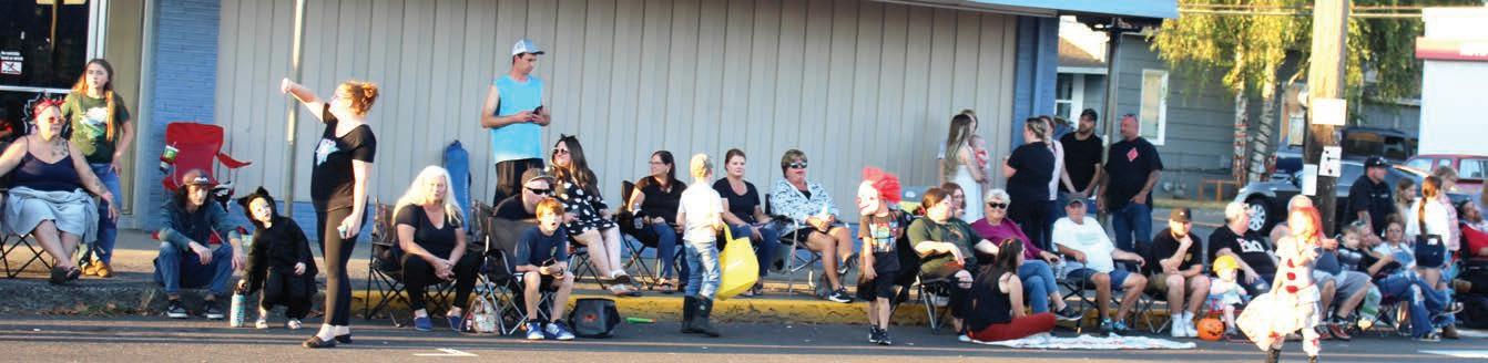 filled Columbia Bou levard early Saturday evening, Oct. 1, for the first Big Halloween Parade since 2019. It was warm and sunny with no rain as St. Helens ushered in its biggest and longest celebration of the year, The Spirit of Hallow eentown. Crowds lined the street as parade participants tossed candy to children watching the event.