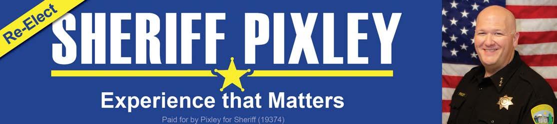 Pixley began by saying, “I’m running for re-election because of everyone in this room.” He said that in his 3-1/2 years in office, he had obtained grants, trained deputies, reduced crime, and improved transparency, all with “a meager budget.”