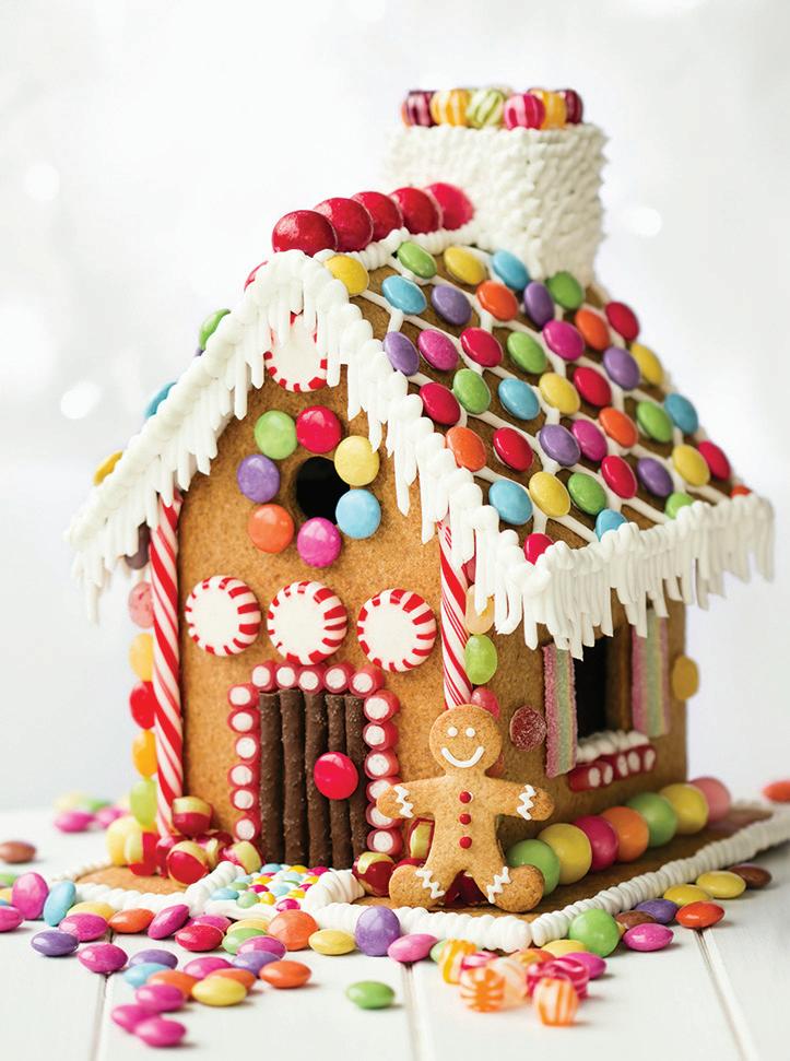 17. To decorate: Attach the assorted candies to the house, decorating the roof with a tiled pattern using the frosting.
