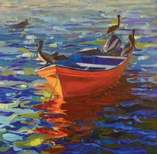 his new “Scrap Boat Series;” mixed media by Courtney Holton who creates abstract pieces using metal and paper bands with acrylic paint; and glass artist Beth Anderson with new fused glass flowers, mosaic pieces and artistic end tables.
