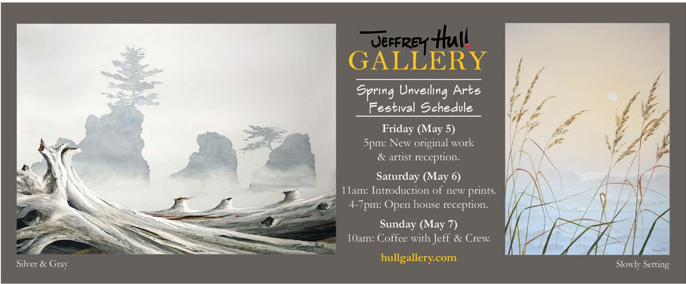 The gallery is celebrating its 36th year in Cannon Beach and Jeffrey Hull has been capturing the beauty and moods of the places where the land meets sea in watercolors for over five decades and oils for over 15 years. EVENTS & ACTIVITIES: Friday, May 5 – Jeff will unveil his new original work (5pm). Artist Reception with live music (5:30pm). Saturday, May 6 - Jeff will unveil his latest giclee prints (11am). The gallery will have extended evening hours, with an Open House reception.