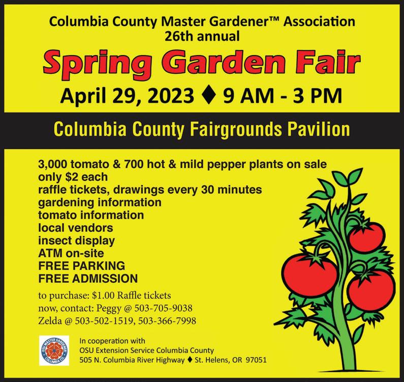 North Columbia County’s trusted local news source 401 Columbia River Hwy, Clatskanie, OR 503-728-2490 Ingredients for life. Supporting our local community. Oregon CCB# 154994 503-556-2951 Lighting up a better future for families A full service water treatment and water pump company. 503.397.1744 mcmullenwater.com - Family owned and operated since 1977McMullen Water Systems is licensed, insured, and bonded. The company’s Construction Contractor’s Board (CCB) number is 204823. NEW TO THE WORLD Online Insert Flipp Book DOWNLOADABLE PRINTABLE Exclusive Deals from Fred Myer and more! go to Worldlink.com/inserts! New to The Chief Go to www.thechiefnews.com/inserts/ Columbia County PRESENTED BY The Chronicle The Chief SPONSORED BY Vendors wanted Contact Jon at 503-397-0116 At the Columbia County Fairgrounds: 58892 Saulser Rd. St. Helens, OR 97051 May 20, 10 a.m. to 5 p.m. & May 21, 11 a.m. to 3 p.m. Online Insert Flip Interactive 1805 St. Helens Street, St. Helens OR 97051 503-438-0016 yogayounion.com Dedicated to your well-being We support National Child Abuse Awareness