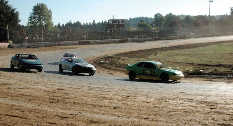 Courtesy from Mike Weber St. Helens driver Bob Berg leads the pack during the final race competition at River City Speedway.