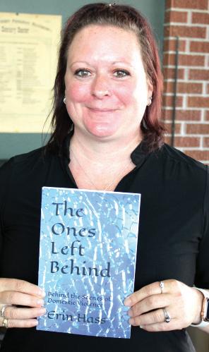 Courtesy photo Rainier resident and local victim advo cate Erin Hass holds the novel she has written about domestic violence.