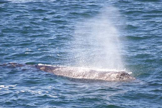 near Baja, Mexico. The end of December is the peak time for their migration; roughly 30 whales pass by per hour.